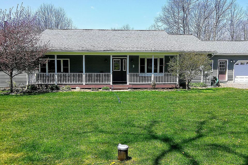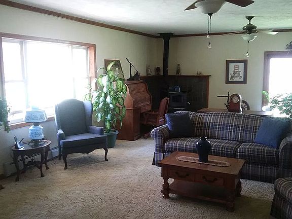 PRICE IS FIRM...Will no longer pay 1% to buyers agent. Beautifully maintained ranch. Home was totally remodeled in 2008. Kitchen / dining area open to large living room, with wood stove, for entertaining family and friends. Plenty of oak cabinets in kitchen, with Formica counter tops. Bay window in dining area. Master bedroom is very large, with a walk in closet, carpet, and a full bathroom. Other bedroom's are nice size with carpet,and large closets. Main bathroom is very large, with soaker tub, and nice size linen closet. 1car attached garage. Separate 24 x 30 2 car detached garage. Covered front porch. 5.04 acres, private and peaceful. Beautifully landscaped with, cherry tree, crab apple tree, hydrangea tree, and lilac bushes. Although this is part of the Folmont Development, it is located on a township road, with township maintenance. Range, refrigerator, dishwasher, garbage disposal, washer, dryer, garage door openers and additional refrigerator is included.