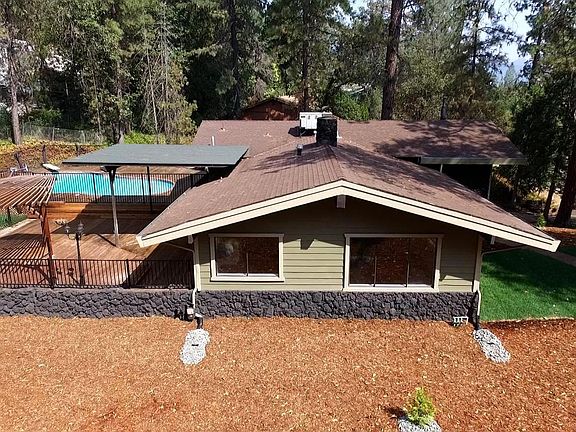 Beautifully Remodeled! Come sit on the huge patio and enjoy the large sparkling pool. The homes many new features include new open kitchen,counter tops, breakfast bar,bamboo flooring. Some of 4 bedroom 3 bath unique features include large fireplace,downstairs bedroom with 1/2 bath & woodstove,4 car garage with workshop, extra covered parking for all your toys. Park like setting all newly landscape