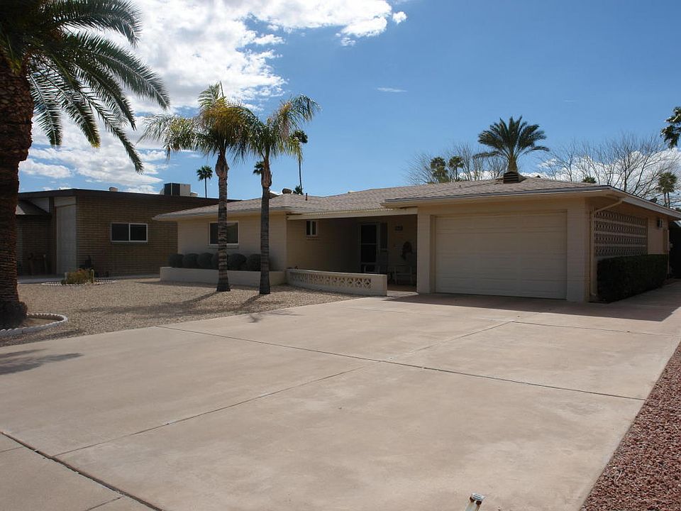 Are you looking for views in the morning and views at night-you got it. Drink coffee on the front patio in the morning with relaxing mountain views. Watch the golfers on the 17th hole from the full length back patio of this beautiful block home. If you want well maintained, block construction with easy care landscaping, this is the place for you! Very clean home ready for the updates that please your taste. Kitchen has recently been painted and has new flooring. Roof redone in 2012 w/ 30 yr composition shingles, new water heater in 2016. A/C well maintained. Apache Wells is an amazing adult golf community with amenities to many to identify...new wood shop, library, community church, bar and restaurant, community heated pool and spa, workout facility, cards, billiards, click ''more''
