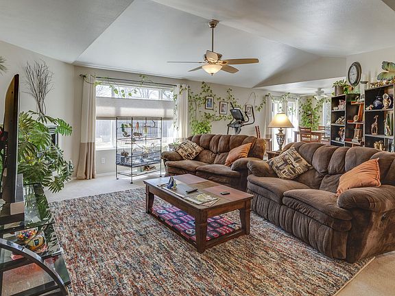 Nice open floor plan. The living room features vaulted ceiling and gas fireplace. One level home in Northwest Redmond area 3 Bedrooms, 2 Baths. Primary bedroom with walk in closet and double sinks in the primary bath. Good location near Redmond's Dry Canyon Trail. Attached finished double car garage. RV parking area at the property. .21 Acre fenced lot. Mature landscaping.
