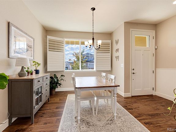 Seller is offering a $5,000 concession for closing costs for a contract by 12/31/24. From the minute you open the door, you will be thrilled with all the charm and upgrades this home offers. The beadboard wainscotting creates a modern farmhouse feel. The kitchen has a large island and pantry, upgraded stainless appliances and gas stove top. Upgrades include Hunter Douglas plantation shutters and shears throughout, upgraded LVP flooring, lots of add'l electrical outlets, wrought iron stair spindles, custom baseboards, hard wired security system, locking window wells, and ADA upgraded toilets. The open main floor plan offers a dining area, main floor living room with gas fireplace, stone surround and wood mantel, primary suite and two additional bedrooms on the main floor. The primary suite has dual vanities, large walk-in closet, granite counters and custom shower finish. Laundry is tucked in a mud room area with stairs to the fully finished basement. The basement is completely finished with spacious great room/game room and wet bar plus two additional bedrooms and full bath. Central AC, 50-gallon water heater, dual zone A/C, whole house humindifier, radon mitigation system, are the highlights of the upgrades. The garage is completely finished, with full insulation, textured, painted and has epoxy floor and an attic fan installed in the solar tubes. Your utilities are extremely low due to the fully paid for solar system. Step outside to the fully enclosed sun room with steps to the back yard and play area. Backing to the open space, this home is private and just steps away from the community clubhouse with pool and play area. Low HOA fees include use of community pool, clubhouse, trails and includes garbage/recycling as well. Crystal Valley is conveniently located off I-25, just 45 minutes to Denver International Airport or Colorado Springs Airport, and is part of the nationally recognized Douglas County School District.
