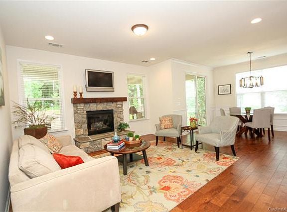 This home shows even better in person! Great curb appeal w/ front porch, an open floor plan, enviable oversize kitchen island - perfect for entertaining. With a convection/microwave plus wall oven, plenty of room for home chefs to cook/bake! Main level owners suite includes impressive walk in shower in owners bthrm + 2nd bedrm on main. Upstairs, another generous sized bedroom, full bath + a flex loft space - home gym/game room/secondary living rm? What suites your needs? Built in ceiling speakers outside back porch + in l/r. Extended coverage on the back porch allows 4 season use, overlooking the beautifully landscaped, fenced in backyard oasis (+ the water fountain stays!). Nice private quiet lot with no neighbors house behind you. N'hood has lots of amenities: pool, tennis, playground, etc. Fridge, W/D can convey w/ an acceptable offer. Bonus - this home is considered one of the "Maintenance Free" homes. It includes all pine straw/mowing/edging including inside the fencing.