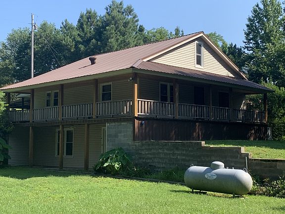 3 Bedroom 1 Bath sitting on 1.3 acres Must see! Finished basement with bedroom and bonus area that could be used for playroom,man cave, or hobby area. Large fenced in back yard with two dog kennels. Beautiful wrap around covered porch. 2 car carport & garage that could be used for work shop. Home is three levels one bedroom on each level. Home has been partially renovated. Cute home on a quiet acre lot!