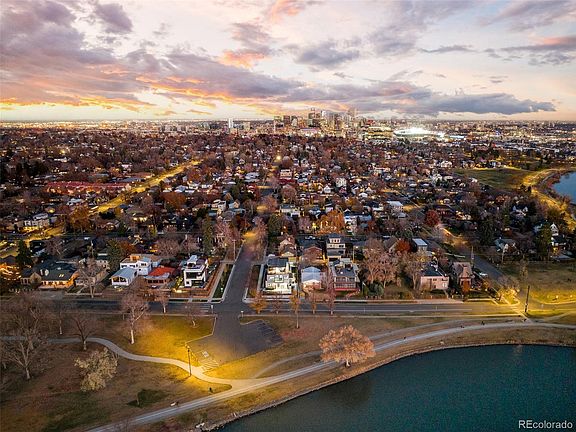 A rare and contemporary masterpiece takes hold on the edge of Sloan’s Lake. Built in 2020, this custom home is situated on a corner lot with remarkable outdoor connectivity — taking full advantage of the picturesque surroundings. A wall of accordion glass doors integrates the front yard into a living space anchored by a water feature and built-in natural gas line. Nearby, a designer kitchen with Thermador appliances features a modern, monochromatic palette. Nestled on the main level is an ADA-compliant bed and bath for added convenience. Retreat upstairs to a primary hideaway complete with a built-in coffee bar and a private balcony. with unobstructable mountain and lake views from all levels and a showstopping bathroom, with steam shower, fit for a five-star resort. Complementing the motif of the upper levels, the finished lower level is a guest’s dream with a kitchenette and a massage chair. Crowning this home is an upper-level terrace in which residents can take in the 360 degree stunning views (city, mountains and lake) from a hot tub, indoor bar area and multiple lounging spaces.