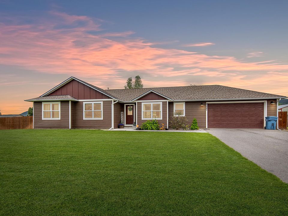 Welcome home to easy living in Houle Meadows! Located on a full acre in the Frenchtown School District and only 20 minutes to Missoula you'll find this turn-key ready ranch style home. On arrival you'll love the views and neighborhood feel. Once inside you're welcomed by plenty of natural light, warm and inviting finishes, and the perfect spacious and open floor plan. All on the main level are the oversized great room with living and dining spaces, and the generous open kitchen with dedicated panty and breakfast bar. Down the hall are 3 bedrooms and 2 baths including the large primary suite with a full bath and walk in closet. The two stall attached garage enters into a fantastic mud/laundry area with it's own half bath! Outside is the expansive and fully fenced yard! Listed by Mike Kaptur