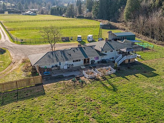 Nestled in a remarkable location that offers access to top-ranked schools, this striking estate spans over 17acres of picturesque surroundings. The property boasts a long driveway that meanders through multiple horse pastures, creating a captivating and idyllic setting. As you continue down the drive, the home emerges, situated a short walk to the Tualatin River with direct waterway access. The spacious 1971 tri-level home offers just under 3,000 sqft. of space, featuring 4 bedrooms, 3.1 bathrooms, an attached oversized two-car garage, and separate RV storage. Upon entering the main level, you are greeted with gleaming hardwood flooring throughout, an open concept kitchen, dining, and living room that seamlessly opens onto the backyard patio. The kitchen is adorned with updated finishes, including granite countertops, high-end cabinetry, a large prep island, walk-in pantry, and stainless steel appliances. The primary suite beckons with a walk-out deck overlooking the private treed backyard, while the other bedrooms offer ample storage and are bathed in natural light from south-facing windows. The lower level has been newly remodeled to offer generous ceiling height, a large bedroom, a family room for entertaining with built-ins, and a full bathroom. The mature landscaping is visible from every room, and adjacent to the orchard of fruit trees is the smaller of two stables with 6 stalls, three attached runs, a sizeable tack room, and a wash rack. Additionally, in the distance, the 70X150 indoor arena overlooks the pastures and a perimeter hacking trail down to the river. The property also includes a larger stables with 8 stalls and attached oversized 25ft run-ins, each with its own individual tack-up and storage area, ideal for boarding operations. There is a spacious shop with concrete floors, perfect for use as a workshop, along with a covered storage area ideal for storing tools and equipment. The property is zoned EFU and benefits from deferred taxes and H20 right