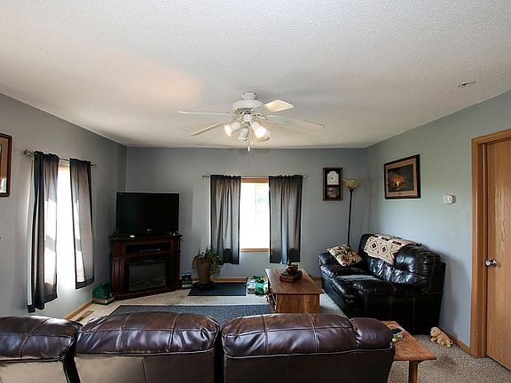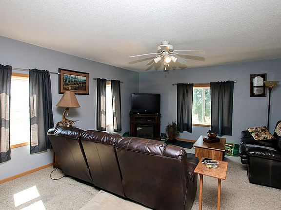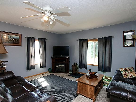 Close to Hutchinson is where this 4 bedroom, 1 1/2 story home is located. Features an open floor plan, center island kitchen and finished basement with family room, 2 bedrooms & bath. Deck overlooks 2.42 acres with wildlife. Double detached garage is insulated & heated - great mancave. Maintenance free exterior. Quick possession and only 3.5 miles from town.
