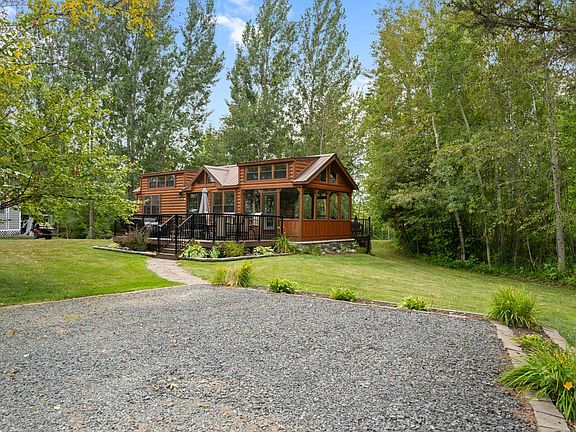This is not your typical park model! This dwelling is stick-built with residential appliances, a 40,000 BTU Goodman propane furnace, a 1 1/2 ton AC unit, a 40,000 BTU propane fireplace, and an on-demand water heater. It is more like a tiny home on an owned lot, with 2 lofts for sleeping, 1 main floor bedroom, a main floor bath, a fully enclosed porch, 2 decks, and more bunk space in the shed! This property comes furnished and the Northwoods decor is to stay! Enjoy fishing, swimming at the beach or in the pool, games, activities and so much more! As an owner and member of the association, you also have year-round access to your property as well. Your dreams of waterfront ownership could become a reality today!