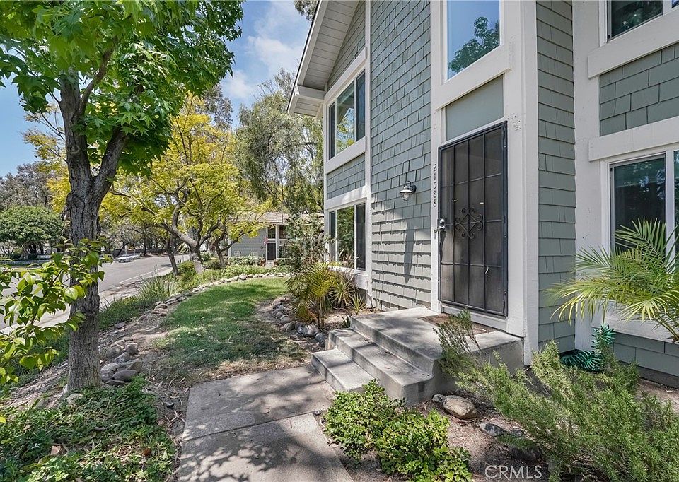 Welcome to this beautiful light and bright end unit. This 2 bedroom, 2 Bath Townhouse sits just inside the wonderful community of Serrano Hills. Enter into the living room featuring a built-in under-stair storage, a wood paneled entertainment wall and beautiful vinyl floors. From there walk into the large kitchen with an island and dining banquet. Also included in the kitchen are stainless steel appliances including the BRAND NEW Oven/Range and Microwave. Lots of cabinets and vinyl flooring finish out this wonderful space. Past the kitchen is the slider to the secluded back patio perfect for entertaining during those warm summer nights. Finishing off the lower level is the updated guest half bath. Up the stairs on the second level you find the two large bedrooms with walk in closets and vaulted ceilings. These rooms have plenty of natural as well as ceiling fans. The upper level also has a remodeled bathroom with a tub/bath combination. Don't forget the washer/dryer areas as well. This build in area features an INCLUDED washer and dryer along with a clothes folding platform and cabinets for organization. including 1 half bath. If all this wasn't enough, don't forget the central air and heat, the recessed lighting and dual pane windows. The unit also includes a single car garage and one additional assigned parking space. The second HOA includes the Sun and Sail Club at Lake Forest Lake. This club has a recreational center, fitness center, volleyball, tennis courts, FOUR pools, a spa and sauna for your use.