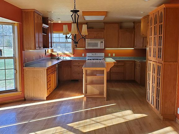 3 bedroom 2.5 bath with bonus office on 3.14 acres! Open kitchen/dining area with a wet bar in the attached hallway. Large living and formal dining room, full unfinished basement for tons of additional space. 2 car attached garage. Deck off of master bedroom with small fenced area. Gardening area and room to build a shop for all your hobbies. Property being sold in ''AS-IS'' condition.