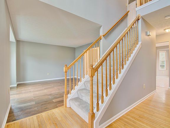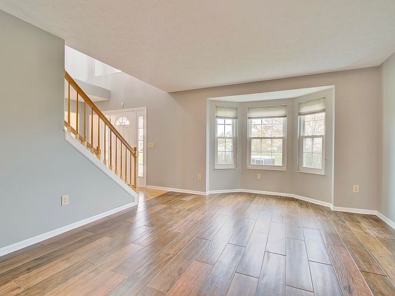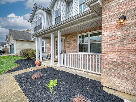 Stately 3-bedroom, 2.5-bath with over 2,000 sq. ft. of living space in the heart of Burlington! Nestled on a private lot with a large front porch, this home is perfect for those who love both relaxation and entertaining. Grand 2-story entry filled with natural light, complemented by hardwood flooring. Inviting family room features a cozy gas fireplace, and an open concept layout that flows effortlessly into the expansive kitchen. Here, you'll find an island, built-in desk area, and charming breakfast nook that walks out to a tree-lined backyard with partial fencing for added privacy. The living and dining rooms provide extra space for gatherings, a home office, or whatever fits your lifestyle. Spacious laundry room includes a convenient 2nd backyard access point! Upstairs, the massive Primary Suite boasts a transom window, ensuite bath with double sinks, new flooring and big walk-in closet. The hallway is spacious enough to add an accent table or reading nook for added charm. Fresh paint/New carpet throughout, New Back Door - this home is move-in ready! Plus, New front door with side windows is being installed in mid-April, adding more curb appeal. Don't miss this opportunity!