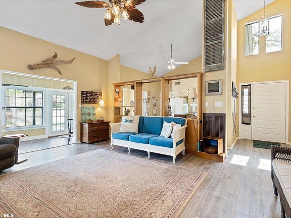 Welcome to your new dream home in the desirable Spanish Cove neighborhood, nestled on a picturesque corner lot with a stunning, professionally landscaped yard. This modern 3-bedroom, 2-bathroom house features a spacious 2-car garage and RV parking pad and hookups, a whole house generator and sprinkler system making it perfect for all your needs. The backyard is perfect for outdoor entertaining, with multi entertaining areas featuring a private firepit area with plenty of space to enjoy with friends and family. And when you're ready to wind down, the bedrooms offer comfortable accommodations with ample natural light and plenty of closet space. As you step inside, you'll be greeted by a beautifully designed interior that includes a great room with vaulted ceilings and a cozy brick gas log fireplace, perfect for gathering around on chilly evenings. This 3 bedroom 2 bath home is handicap accessible to include handrails and grab bars in the bathrooms. The house also boasts a heated and cooled sunroom, a side screened porch, and multipurpose room perfect for exercising/playroom/separate Media Room or office offering plenty of space for relaxation and enjoyment. But the amenities don't stop there - Spanish Cove offers a wide range of activities, including a heated and covered pool for year-round swimming, private owners dock overlooking the breathtaking Perdido Bay, shuffleboard courts, a Bayfront clubhouse and beach area for your enjoyment. You'll never run out of things to do in this amazing community. Don't miss out on this incredible opportunity to own a beautiful home in a stunning neighborhood. Fridge, Washer and Dryer Remain with property. Schedule your showing today!