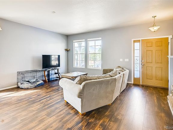 Sunlight-filled end-unit townhome with beautiful mountain views in the desirable Bluffs at Spring Creek community! Convenience and easy living blend seamlessly in this inviting home offering a gracious open floor plan, solid hardwood floors plus rich wide-plank hardwood laminate floors, kitchen with ample cabinetry/countertop space and all appliances, spacious master bedroom with a walk-in closet and attached full bath, upper-level loft for flexible space, and an excellent location in a well-maintained community with panoramic views near military bases, shopping, restaurants, and schools. A covered front porch overlooking peak views welcomes you inside to open living and dining areas with polished hardwood laminate flooring and sunny windows bringing the mountain views in. The large nearby kitchen features all appliances, solid hardwood floors, space for a second eating nook, French doors opening to the main-level laundry closet, and rear yard access to a community-maintained greenbelt. A powder room completes the main level. An open stairway leads to the upper-level master suite with peaked ceilings, a large walk-in closet, and an attached full master bath. An additional upper-level bedroom has peak views and a full hall bath, and an open upper-level loft can be used as a 3rd bedroom or flexible work/play space. Additional home features include central air conditioning, pass-through between kitchen and dining area, custom window coverings, vinyl windows, and an excellent community near a community park and playground, military bases, and schools. Exterior maintenance, snow removal, and trash removal are all taken care of for you. This beautiful townhome is not to be missed!