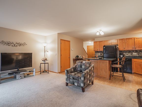 This townhouse style end unit condo has been meticulously maintained. Open concept kitchen features an island, recessed lighting, and pantry. The living room has a gas fireplace and patio doors leading to the private deck. Generous bedrooms both have walk in closets. You'll find extra living space in the basement rec room. Enjoy the conveniences of in-unit laundry, private entrance, and private attached garage. Access to green space right across from the unit. Pets are allowed. Move right in!