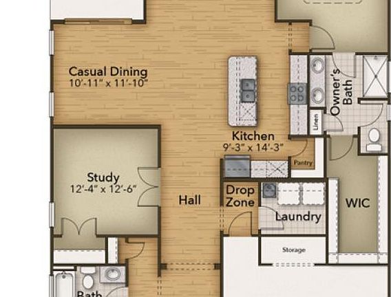 Step in from the Shorebreak’s covered front porch to find 3 bedrooms, 2 bathrooms, an open kitchen, dining, and great room area finished with a beautiful tray ceiling. Breeze through sliding glass doors onto a large covered porch, ideal for warm summer evenings or afternoon get-togethers. Through the foyer, you’ll find a large drop zone and laundry area. Drop-off beach chairs in the convenient storage space just inside the garage, as well. Across from the drop zone is a spacious third bedroom. Beyond the open living space, find a stunning owner's master suite complete with a tray ceiling, enormous walk-in closet, double vanity, and a seated shower. Go ahead, kick your feet up, sit back, and relax among the day-to-day comforts and spaciousness of your new home in Heritage Park!