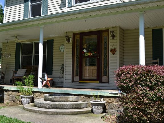 The Waltons could live here. 5 bedroom, 3 1/2 bath on the most private, beautiful 1.3 acres one could imagine. Open floor plan in the living, dining, and kitchen all with gorgeous hickory flooring and cabinets. First floor master has hickory flooring, an en suite bath that goes on and on and beautiful patio doors leading to the porch and hot tub. All appliances and hot tub included. Second level has 4 bedroom, 2 full baths off a central family room. Bonus, there is a view from every window. Enjoy the great outdoors on a spacious, wrap-around porch or on the nicely laid out decking out back. Cute chicken house included!