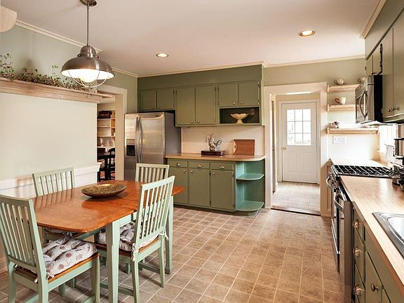- Kit Dscrp: Pantry, Main Level, Dining Area, Flooring - Stone/Ceramic Tile, Stainless Steel Appliances, Recessed Lighting, Exterior Access, Country Kitchen, Walk-In Storage, Lighting - Pendant