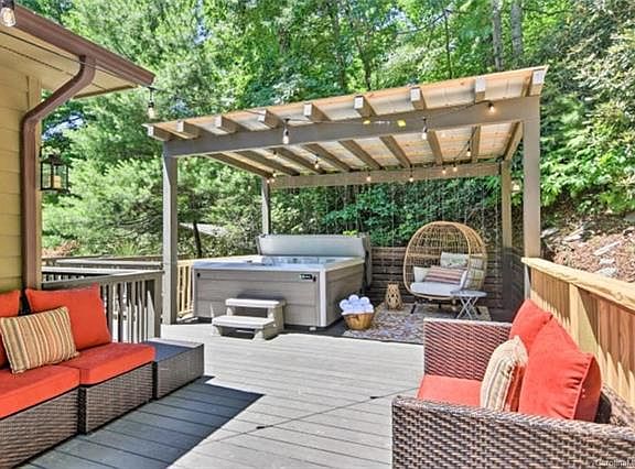 Primary, second home or vacation rental. Located 2 miles from downtown Black Mountain and 20 minutes to downtown Asheville, this move-in ready oasis has it all. Situated on 1.36 acres with over 1,200 square feet of outdoor living space including a hot tub, outdoor dining and winter mountain views. The renovated interior of more than 2,500 square feet includes 2 living rooms, 3 full baths, 4 bedrooms (only 3 bedroom septic), 2 dining areas and plenty of storage. The downstairs area is perfect for an in-law or guest suite. Two-car garage and plenty of additional space for parking. This home is perfect for gathering and enjoying the outdoor scenery while being minutes to amenities. Currently being used as a second home & vacation rental. Furniture negotiable. Come see this pocket of stardust. Includes 2 additional parcels - see MLS listing.