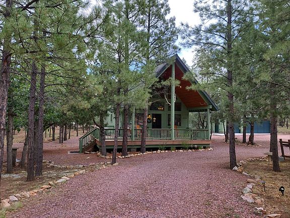 Absolutely adorable Chalet cabin on 1 full corner acre in the Tall Pines. One of the few chalet style cabins with a huge covered trex deck in front. 3 Bedrooms/2 Baths. High end Kitchen with gas range, custom cabinets, and separate pantry. Large master suite with side sitting area. But WAIT, The garage is to die for. It was built more recently and is 30 ft by 32 ft with room for 3 cars and workshop. The house has hickory wood floors and a gas fireplace to enjoy on a cool evenings. Shed for extra storage and greenhouse. Sit out on the deck after a cool monsoon rain shower and experience the serenity of the peaceful mountains in the Ponderosas!!!