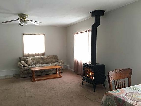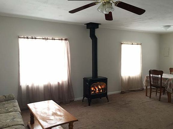 The interior paint is still wet. Move in ready home is perfect for a single person, or minimalist couple. 3/4 bath has ceramic tile, open living area is carpeted. Gas log fireplace sets the ambiance. 1 car detached garage will fit a compact car. The 9x12 open deck is a perfect place to read a book with a glass of wine. Great location, with Natural Gas, paved road, and a short distance to town.
