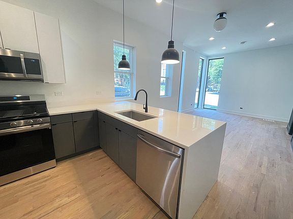 Beautifully renovated unit in West town for March1!! 1st floor, front-facing unit on Huron and Leavitt! Washer/dryer in unit!! No security deposit $400 move in fee per apartment Fully rehabbed, 1 Bed + Den, 1 Bath. Laundry in the unit. New HVAC. Wood floors. New kitchen and appliances with pendants and dining area. Open floor plan, high ceilings, great natural light. Unique design features including kitchen cabinetry, bath tile, and paint scheme. Monthly RUBS fee: $100/mo includes internet, storage, smart locks and snow removal. Building features full access control, cameras, and fob entry for tenants. Units come pre-wired for smart entry locks, smart thermos, and wifi routers (internet included). At least 24hr notice to show while occupied through February!! Available March1 for 13months until 3/31/26 to get back in sync with rental season