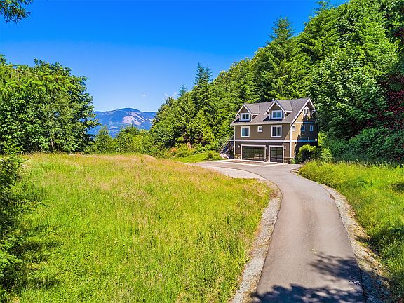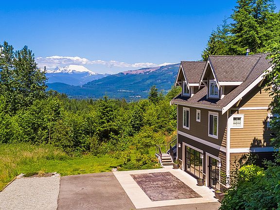 20 acres with outstanding views of Mt. Baker & more! Gated entry, secluded & private! Built to be guest house while you build your dream home, this immaculate home is nice enough to be your primary residence! Filled with natural light, perfect Mt. Baker views & high-end finishes. Hardwood floors, marble counters, stainless steel applcs, walk-in pantry, stone gas FP. Master w/ensuite. Large deck, plus lower patio w/ hot tub. Finished & heated garage has .5 bath- could be bonus rm! Conway School.