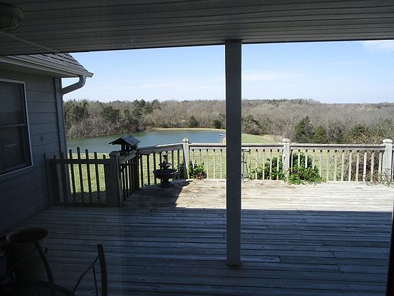 This is a beautiful 70ac m/l with home overlooking a lake that is stocked. Lots of timber w/lots of deer & turkey. This scenic home site also has a 40' deck overlooking the lake and a full length porch also an upstairs game room, a stone (propane) fireplace and vaulted ceilings. There is a 40x30 metal shop w/ concrete floor. This home is a 4 bedroom 2 and half bath, there is also hay and farm ground as well as creek running through the property. This is 11 acres m/l in farm ground and approx. 22 ac of hay ground