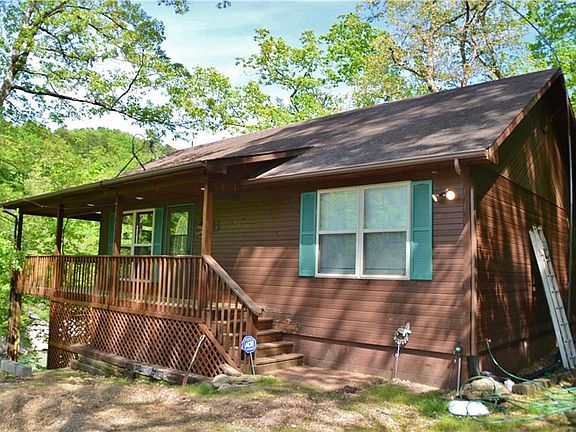 Secluded Beaver Lake Cabin on 34 m/l acres in a cove. Great for a weekend get-away! Native hardwoods & rock cliffs. Home features 2 bedrooms 2 full baths & open kitchen/living room on main level. Lower level is large second living area w/access to lower deck. Other features include Pine board walls, all wood laminate flooring, ss appliances, cathedral ceilings, screened in room of kitchen and deck, and detached 1,500 SF storage/workshop building. Property adjoins Hobb's State Park! Outdoorsman's Paradise!