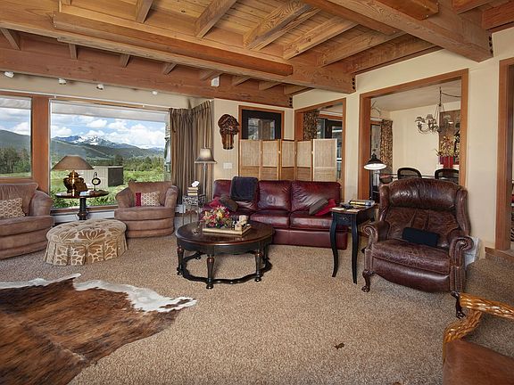 Spectacular property in a spectacular setting. Unique two-story town home on Pines meadow. Backs to Keystone's River Course. Wood beam ceilings. Long views to the west across open space and golf course to snow-capped peaks of the Ten Mile Range. Best sunsets in Keystone. Light and bright solarium is not included in the square footage figure. Detached single car garage. Common indoor pool. Close to Snake River bike path. Shuttle to ski base, convenient to golf. Pet friendly for owners only.