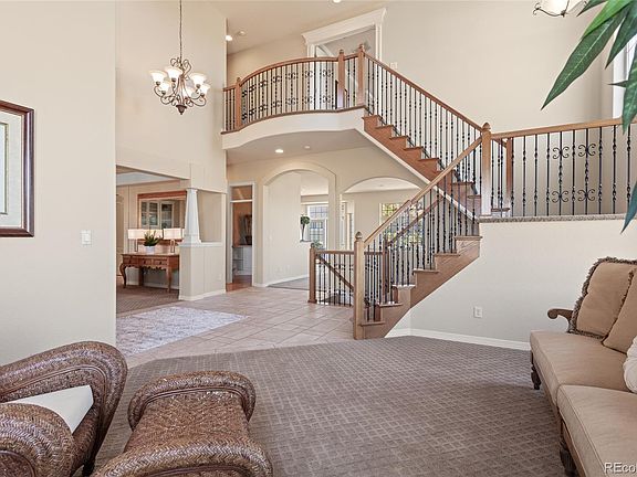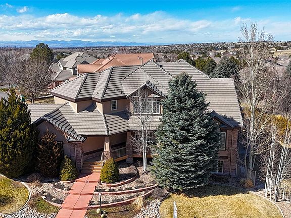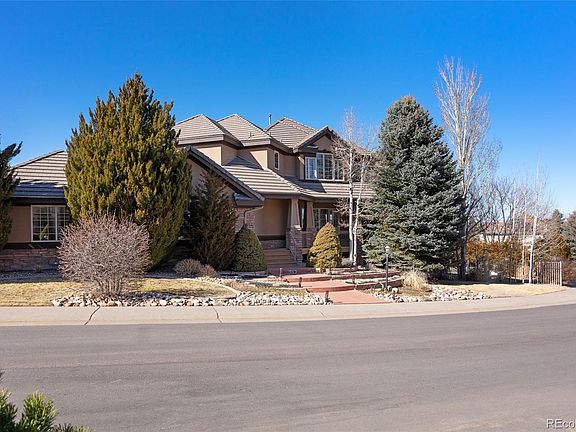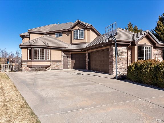 Absolutely stunning Tanglewood at Saddle Rock home fronting to a walking trail and the Saddle Rock Golf Course! Bring your large family – 5 bedrooms, 5 baths, and over 6100 square feet including the finished basement! Beautiful formal living and dining rooms with elegant crown molding are perfect for entertaining! A main floor study features wainscoting and library built-ins. The kitchen is the heart of this home with abundant white cabinetry and granite countertops, a large island for additional seating and food prep, a side bar with veggie sink, and all stainless appliances including double ovens and a gas cooktop! Gather in front of the charming gas fireplace on chilly Colorado evenings in the huge family room for a family movie night! A convenient powder bath and laundry room with TONS of cabinets and a utility sink completes the first level! Upstairs is a luxurious primary suite with a double-sided fireplace, a large walk-in closet, and a spa-like 5-piece bath with His and Hers counters, a jetted tub, and an oversized glass-enclosed shower! Perfect for unwinding after a busy day! The 2nd bedroom on the upper level features an en suite ¾ bath (great for guests!), and two more sizeable bedrooms share a full bath! Don’t miss the walkout basement that boasts a large rec room with theater area and wet bar, a 5th bedroom, and another ¾ bath! Great space for the kids to hang out or for watching the big game! Step out onto the gorgeous Trex deck overlooking the fenced backyard great for summer parties with friends and family. Some extra special features of this lovely home include a 75 gallon water heater and central vac! Low HOA fee for fabulous Saddle Rock amenities, and miles of trails are just a few minutes walk away! Great location with easy access to Southlands shopping and dining, grocery stores, E470, DIA, and the Denver Tech Center!