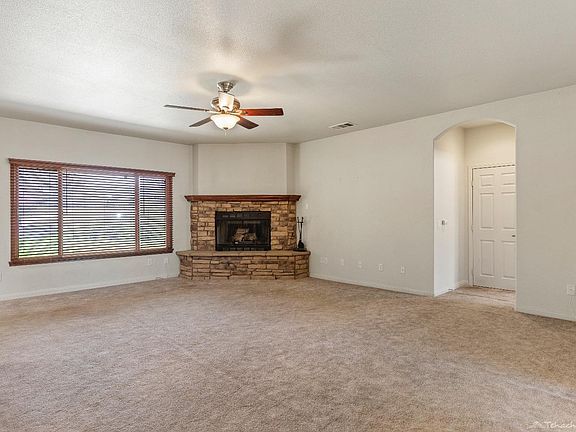MUST SEE! Nestled among the rolling hills and verdant valleys of Golden Hills East, this stunning single-family home is a true oasis of comfort and luxury. From the moment you step inside, you are enveloped in a sense of warmth and tranquility, thanks to the high ceilings, arched doorways, and natural light that floods every corner of the home.As you enter the main living area, you are greeted by a welcoming fireplace and a sense of spaciousness that is perfect for entertaining guests or simply unwinding after a long day. To the right of the entrance, you'll find a quiet office space and a sumptuous primary bedroom that exudes elegance and sophistication. The primary bathroom features custom cabinets, Corian counters, a jacuzzi tub, and a shower with dual shower heads, providing the ultimate in relaxation and comfort.On the left side of the entrance, you'll find a Tuscan-inspired dining room that is perfect for hosting dinner parties or intimate gatherings with friends and family. Beyond the dining room lies a beautifully appointed kitchen, complete with dark-stained wood cabinets, quartz countertops, soft-close drawers, and a sink in the island. Whether you're a seasoned chef or simply enjoy preparing meals for loved ones, this kitchen is sure to impress.The split wing floor plan of this home features three bedrooms and two bathrooms, providing plenty of space for both relaxation and practicality. Bedrooms at the opposite end of the home provide privacy for guests, while the ample storage throughout ensures that every nook and cranny of the home is utilized to its full potential. The circular driveway, well-manicured landscaping, and fenced yard provide plenty of curb appeal and outdoor living opportunities, while the covered concrete patio offers privacy, mature lilac bushes surround the back yard and provides a peaceful spot for enjoying the fresh air.With a newer HVAC system, tankless water heater, and paid-off solar panels, this home is both energy-efficient and cost-effective. The detached workshop and spacious three-car garage offer endless possibilities for hobbies, work, or storage, while the fiber optic high-speed internet and security motion lights provide peace of mind in today's connected world. All of this and more is waiting for you in this stunning, flora and fauna-inspired home in Golden Hills East.