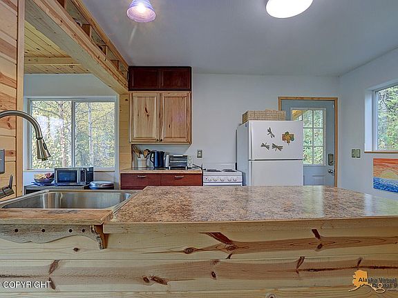 MOVE IN BEFORE THE HOLIDAYS! Take advantage of a rare opportunity to own this turn-key, updated rustic cabin in the woods near Knik River, just 15 minutes from Palmer & an hour to Anchorage. Nestled on 1.5 acres in a quiet neighborhood, this homey cabin features a new roof, a 165-gallon fuel tank, & a private well & septic. Beautifully updated interior includes a renovated kitchen w/modern lightfixtures, refurbished flooring, a new energy-efficient fridge, space-saving washer/dryer combo, & a convenient on-demand water system, all like new & minimally used. Cabin comes fully furnished making this perfect for a rental investment, weekend getaway, or full time living. Relax & enjoy the spectacular mountain views from your covered deck. You are just around the corner from all that Knik River recreation has to offer - come check out this gem while it lasts