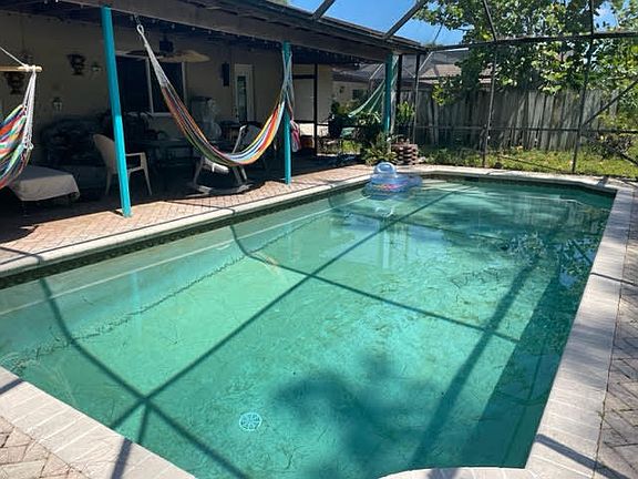 This single family home has 3 bedrooms and 2 bathrooms with a screened-in swimming pool over looking a canal located in Loggers Run. The roof and windows were replaced in 2018. The house is situated in a family friendly area surrounded by beautiful parks, shopping, and wonderful schools. The house is listed below market value. Call for a private showing!
