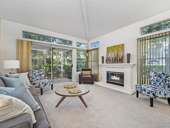 FABULOUS End Unit location with Surrounding VIEWS of the Greenbelt from just about every window. This Single level with Two bedrooms PLUS Office make this Lovely Home Perfectly Functional and a Palmia Favorite Floor plan. Roomy Kitchen with Eating area plus a Large Great room with Fireplace situated to take in the Peaceful Outdoors. Separate Dining area is also an option for entertaining. Front Office oversees the Private entry and provides for a number of uses from a Formal Office to a nice reading area to pick up a good book. Nice sized Master bedroom with Slider to patio. To complete the Master Ensuite, there is a Shower, Dual Vanities and Walk in Closet. Enter the Patio area from the Great Room where one can lounge under the Patio Cover and enjoy the garden. Epoxied Two car garage houses Built-in cabinetry and a Laundry area. Home has also been Re-piped. The 55+ community of Palmia is one where there is plenty of activities and amenities. Several pools and Jacuzzi's, Fitness Room, Tennis & Pickle Ball Courts, 18-hole Putting Green, Bocce, Shuffleboard, Clubs, Trips and more. Residents are also members of the Mission Viejo Lake and all their fabulous amenities. This home is a delight !