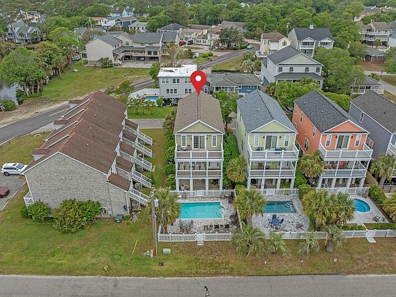 Welcome to your dream coastal retreat! Ocean Empress is a spacious 3-story beach house features 4 bedrooms, 4.5 bathrooms, and is thoughtfully designed for comfort and convenience—including a private elevator. Located just a 3-minute walk or quick golf cart ride to the beach, with designated golf cart parking at public beach access, you'll enjoy easy access to the sand, local restaurants, the pier, and even the neighborhood ice cream shop. Inside, durable tile flooring runs through the main living areas, while hardwood floors add warmth and style throughout the bedrooms. The open-concept kitchen, living, and dining spaces are filled with natural light, creating an inviting atmosphere for relaxing or entertaining. Outside, enjoy a private pool, outdoor shower, and multiple balconies perfect for catching ocean breezes. Whether you're seeking a primary residence, vacation getaway, or a proven investment, this home checks every box. No HOA and already enrolled in a short-term rental program—this is coastal living at its best!