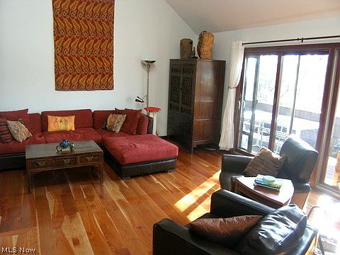 Charming two bedroom, two bath condo nestled into the hillside just minutes from Chagrin Village. Brick walkway leads to front door opening to vaulted great room with fireplace and cherry hardwood floors, formal dining room, newer kitchen with slider to oversized deck. First floor master suite, second bedroom up with full bath and walk closet. Lower level family room with wet bar, laundry room and storage galore. Don't miss this one!!