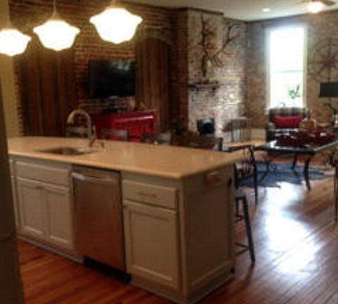 This sale price INCLUDES the commercial retail space (MLS# 908585) on main level as well as an 8 apace parking lot in rear.The upstairs apartment above the business boasts 2 Bedrooms and two full baths with a 6x10 walk-in closet w/ custom built in's. The master bath has a custom built double vanity, granite counter tops, and the x-large master shower features marble/subway tile. The Original transom's and doors where reused throughout, And all the windows where replaced. There is a 6x20 trex deck BALCONY is off the master BR. The exposed brick and refinished original heart pine flooring gives beautiful character to this downtown loft. Secured with alarm for burglary and fire. Come see this beautiful property today with investment commercial rental income below. Owner of property is a licensed Real Estate Agent #365123*