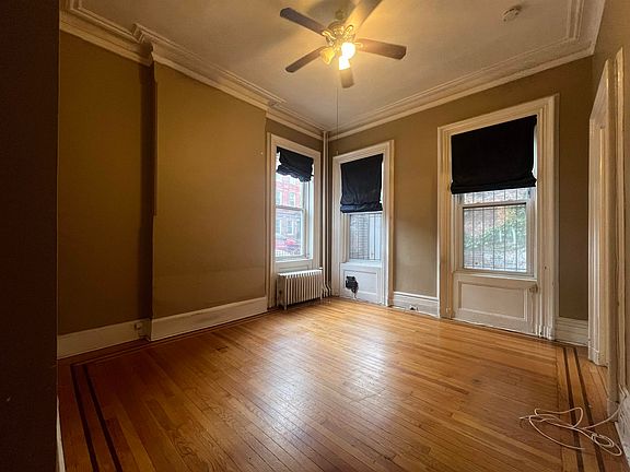 Newly renovated, charming apartment with 10ft ceilings ample space and yard access in uptown Hoboken. This railroad style unit has extra space for a den/office and dining room, in addition to your bedroom and living room. Beautiful hardwood floors throughout and original tin ceilings fill the apartment with character. Free laundry in the building. Heat & hot water included. Ideally located in beautiful uptown Hoboken with nearby parks, restaurants, shops and nightlife, with easy commute options of either the bus to NYC or just a short distance to the 14th St Ferry terminal.