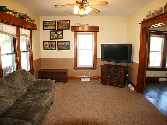 All measurements approximate per court house. Buyer/Buyers agent to verify all aspects of property. 1 1/2 Story, three bedroom, 1 1/2 bath home. Natural wood work. Open stairway. Built-in cabinets in the dining room. Eat-in kitchen. 2 1/2 car garage has vinyl siding and steel roof. Wood burning furnace. Stainless steel chimney liner.Home located in the Northeast School. New roof. New windows. New electrical. New water heater and water softner.