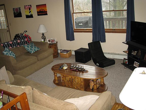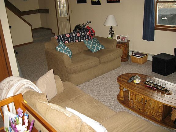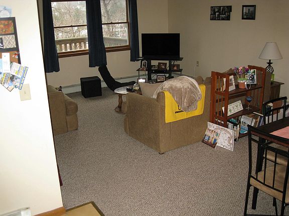 Large two bedroom 1500 square foot apartment (half duplex that is set up like a townhouse). One and a half bath ( both are recently remodeled ), washer/dryer hookup, 25x10 deck, open layout downstairs and lots of closets space (including a walkin closet). Large bathrom has a shower/bath unit and a jacuzzi Hot water baseboard gas heat. No pets. Tenants responsible for utilities, approx $220 per month