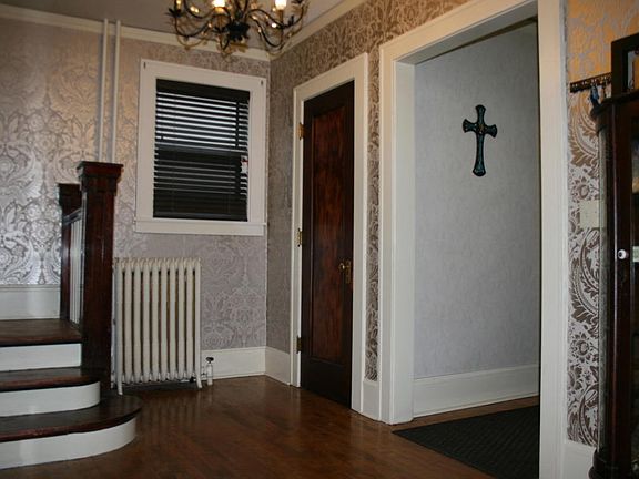 RICH IN TRADITION AND HISTORICAL APPEAL! Four bedrooms on second floor , one opens to master bedroom and could be used as dressing room or den. 3rd floor has built in bunk beds and could be a 5th bedroom or play room. Basement has another non-conforming bedroom, potential of 6 bedrooms. Kitchen nicely updated with new cabinets corian counter tops, one year old gas range and dishwasher. Wine cooler, built in kitchen bench, Large living room with natural wood fireplace and original built in book shelves. Formal dining room , pantry. Lush hardwood floors. Basement family room with another fire place, wet bar, pool table and foos ball table. Updated boiler and water softner. Video Security system, central air, sprinkler system, heated double garage. Out door fire pit, hot tub.