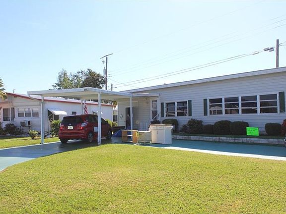 Oversized corner lot in Floridana. Open and spacious with lots of options for room use. Large dining area along with room for a small table in the kitchen. Full bathroom has been remodeled. Extra long driveway for additional parking. Storage room in the carport has washer/dryer and lots of storage space. HOA includes water, sewer and trash along with community pool and recreation area. No age restrictions. Background check community.