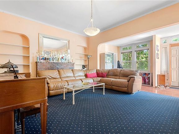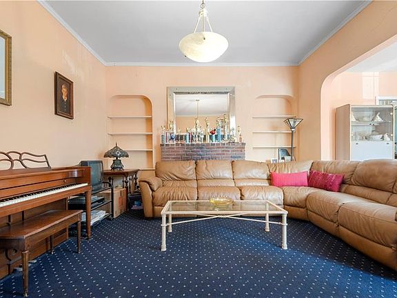 Welcome to an extra-large single-family residence nestled in the heart of Bay Ridge. Converted from a two-family home, this property now offers six bedrooms and three bathrooms. Sitting on a 50x100 lot, parking will never be an issue with your private driveway and a two-car garage. Upon entering, you will be welcomed by a warm, inviting atmosphere filled with abundant natural light. The spacious living room is ideal for relaxing or hosting gatherings, along with access to the second floor. Adjacent sits your formal dining room and sets the stage for memorable meals with family and friends. The first floor includes a sunroom perfect for a home office, a spacious bedroom with tons of closet space, as well as a full bathroom and access to the basement. Off the kitchen, you will have access to the backyard deck along with a back staircase to the second floor. The second level features two ample-sized bedrooms, a full bathroom, and an extra-large main bedroom with a walk-in closet. On the third level, you will find two more bedrooms both equipped with closets and a crawl space for your storage needs. Located in Bay Ridge, you'll enjoy easy access to parks, waterfront views, and a vibrant community atmosphere. Convenient transportation options make commuting a breeze, whether you're heading into Manhattan or exploring other parts of Brooklyn.