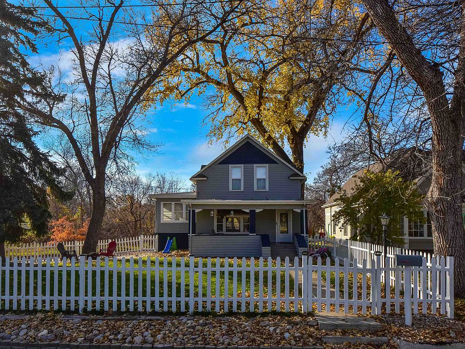 Step into the past and embrace the timeless charm of this historic beauty, nestled in the heart of Minot's Eastwood Park, among other cherished historic homes. This gem boasts four bedrooms, two bathrooms, and a one-stall tucked-under garage, all framed by a picturesque white picket fence. With over 1400 square feet of spacious living area above ground, this home seamlessly marries space and cozy comfort. The well-appointed kitchen features white cabinetry, generous countertop space, and modern stainless steel appliances. Your dining room, perfect for hosting gatherings, opens onto a convenient back porch – ideal for those who relish barbecues and entertaining. On the main floor, discover a versatile bedroom or office with easy access to a three-quarter bathroom. Unwind in the generous living room, your sanctuary after a long day of work or play. Upstairs, you'll find three additional bedrooms and a full bathroom, offering ample space for your family's needs. The basement remains a blank canvas, ready to fulfill your storage requirements. Outdoors, the sizable front yard is fenced and adorned with mature trees, offering a serene atmosphere. The back of the property provides off-street parking and a practical storage shed. For over a century, this home has been cherished and adored, and now, it awaits you to become the next custodian of its rich history. Reach out to your favorite Realtor® to arrange your private tour and secure your place in this enduring piece of Minot's heritage.
