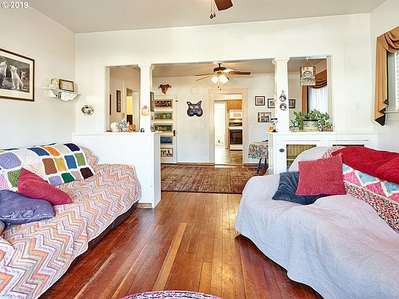 Charming cottage located in desirable neighborhood. Close to downtown Silverton. Original wood floors and cabinetry. The home has a great floor plan. Updated windows and siding. Front porch and extended back patio area. Huge upstairs bedroom/bonus room. Multi-purpose 11 X 13 utility room. Large garage/shop area. Fenced back yard.