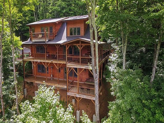Envision your perfect mountain getaway! Immaculately maintained and beautifully appointed custom log home in a premier gated community. Main level living for all essentials. Two story great room with captivating floor to ceiling fireplace. Spacious ensuite bedrooms on each level. Comfortable rec. room complete with wet bar. Covered double decks. Community is comprised of streams, waterfalls, spring fed ponds, picnic area, and playground.