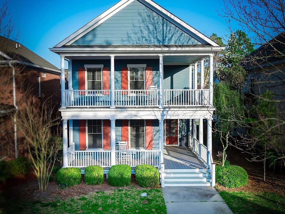 Zeigler-built Charleston-style luxury home with many upgrades, situated in Lake Carolina Harborside, highly desirable neighborhood, safe and beautiful. Stacked wrap-around large porches in front of home with beautiful view and screened-in porch in back connecting 2-car garage. Extra deck off great room. Total square footage - 3800. Elegant foyer with formal stairwell. Hardwood floors entire first level; large formal living-room with lots of light and beautiful moldings; huge formal dining room with columns and elegant moldings; large great room with French doors and deck access; elegant and extensive moldings throughout. Luxurious kitchen with granite countertops, huge island, and gorgeous custom wood cabinetry; all appliances top of the line. Enormous master with trey ceiling, his and her closets, dual vanities with cultured marble tops, separate shower, and whirlpool tub. Secondary bedrooms are oversized and have large walk-in closets. Generous landscaping package with automatic irrigation system. Faux-wood blinds, and rocking chairs on porch included. Lake Carolina is a neighborhood with a real sense of community and wonderful schools. Named Community of the Year for over ten years, Lake Carolina is a close-knit village of good neighbors, convenient shops, lakeside recreation and resort amenities. Harborside is a highly desirable location within Lake Carolina. New A/C August, 2019.