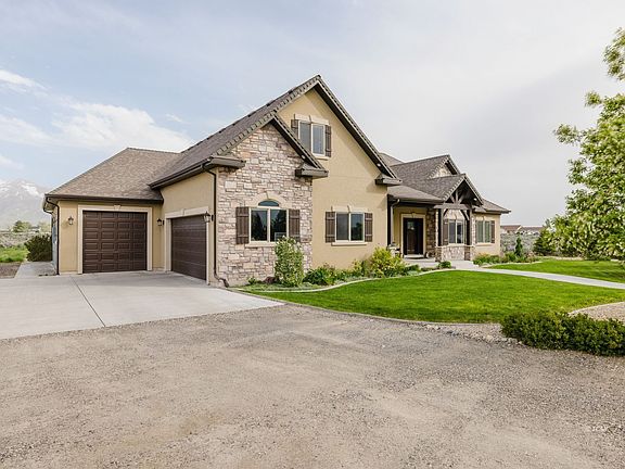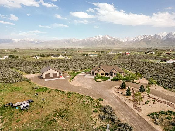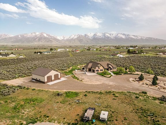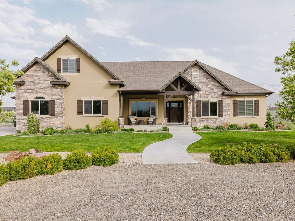 Exceptional custom home on 4.35 acres in Spring Creek with 5,932 sq ft of living space and a 1,920 sq ft shop. Designed with care, the main level features a chef's kitchen with propane range, walk-in pantry, fireplace, office, laundry, 2 bedrooms, 1.5 bath, and a spacious primary suite with a private bathroom and walk in closet. Trex patio access from kitchen and living area adds indoor-outdoor flow. Upstairs offers 2 bedrooms, a full bath, and a living room. The walkout basement includes 8-ft ceilings, a secondary kitchen with built-in barstools, fireplace, living area, 2 bedrooms, 1 bath, gym or additional bedroom, cold storage, utility room, and laundry hookups. The shop features water access, 16-ft and 10-ft roll-up doors, and a lean-to. Enjoy a fire pit, trampoline, auto sprinklers, and drip system. Home includes 2 A/C units, a mini split system, water softener, and quality finishes throughout. No detail overlooked.