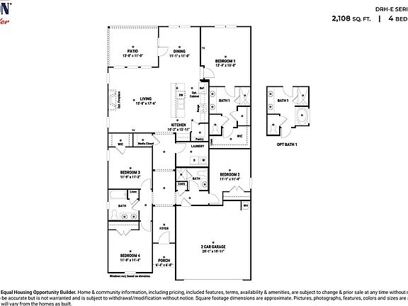 ROBINSON - 2108 SQ FT. /4 BED3 BATHS This open floor plan creates a feeling of spaciousness without sacrificing coziness. The large kitchen open to the family room is equipped with an extra-large island and pantry. Large owner suite with bath ,double vanities and oversized walk - in closet.