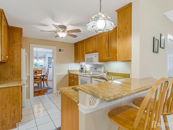 Welcome to this beautifully maintained 4-bed, 3.5-bath home offering over 2,000 sq. ft. of living space in one of Middlesex Borough's most desirable neighborhoods, just blocks from Victor Crowell Park and Pond. From its inviting curb appeal to its thoughtfully updated interior, this home blends timeless character with modern comfort. The first floor was enhanced by an addition creating a private ensuite bedroom with full bath & laundry--a perfect option for guests or multi-generational living. The addition also introduced a bright family room w/French doors leading to the patio and open to the kitchen perfect for entertaining. The kitchen features quality cabinetry, granite counters, a breakfast bar, and plenty of workspace, seamlessly connecting to the dining room for gatherings. A sun-filled den with walls of windows brings the outdoors in, while the living room offers a wood with gas log insert fireplace creating a cozy place to unwind. A stylish half bath completes the main level. Upstairs, the primary suite with dual closets & full bath is joined by two additional bedrooms and a full hall bath. The full basement offers great storage, a second laundry setup, and flexible space for hobbies or fitness. Outdoors, enjoy a beautifully landscaped yard with a paver patio and new remote-controlled retractable awning w/lights, perfect for summer days or fall evenings. Garden beds, a charming shed, and a two-car attached garage add comfort & convenience to this move-in ready home.